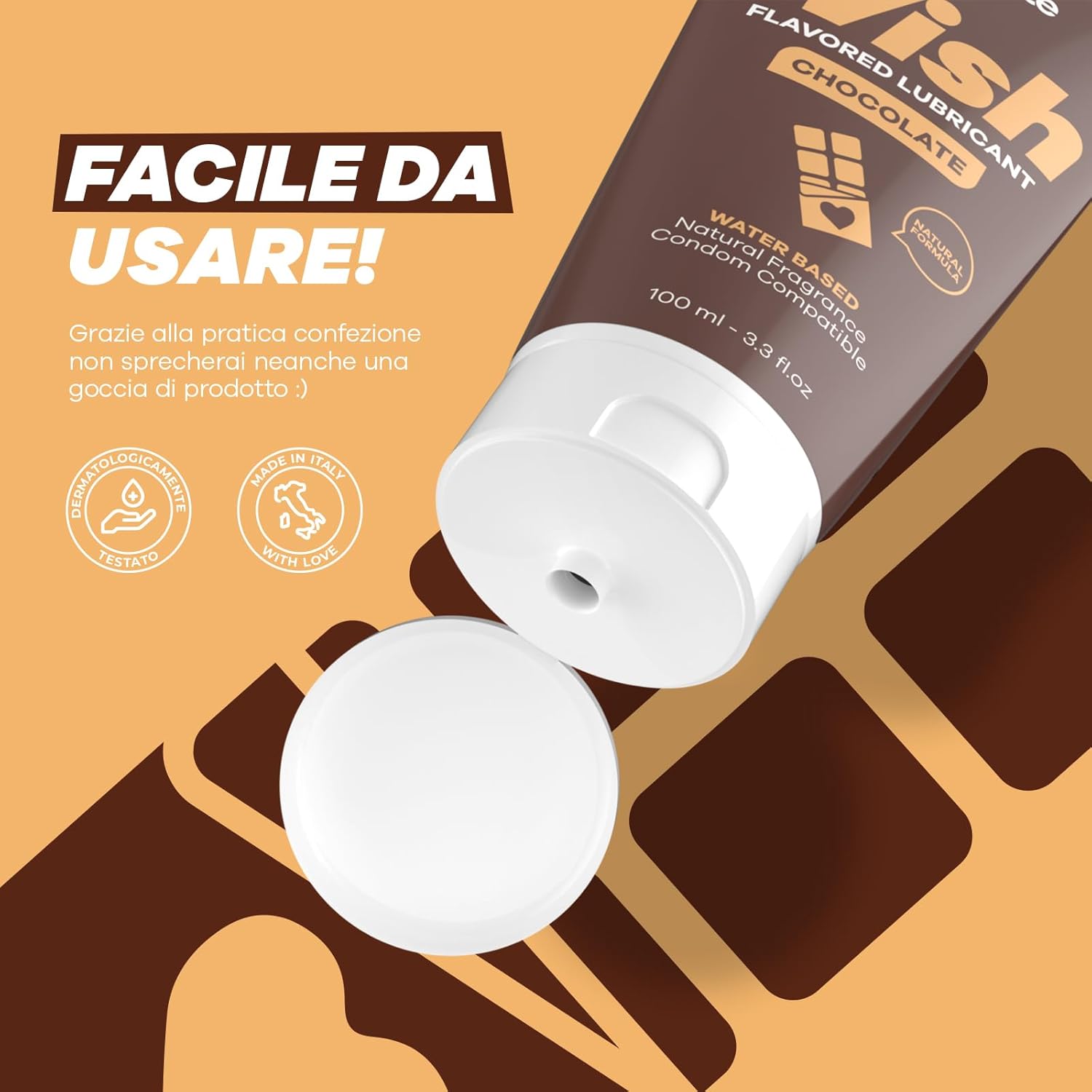 Il profumo intenso di cioccolato stimola i sensi, sostiene l’eccitazione e trasforma il gesto in un momento più pieno — caldo, continuo, presente.
